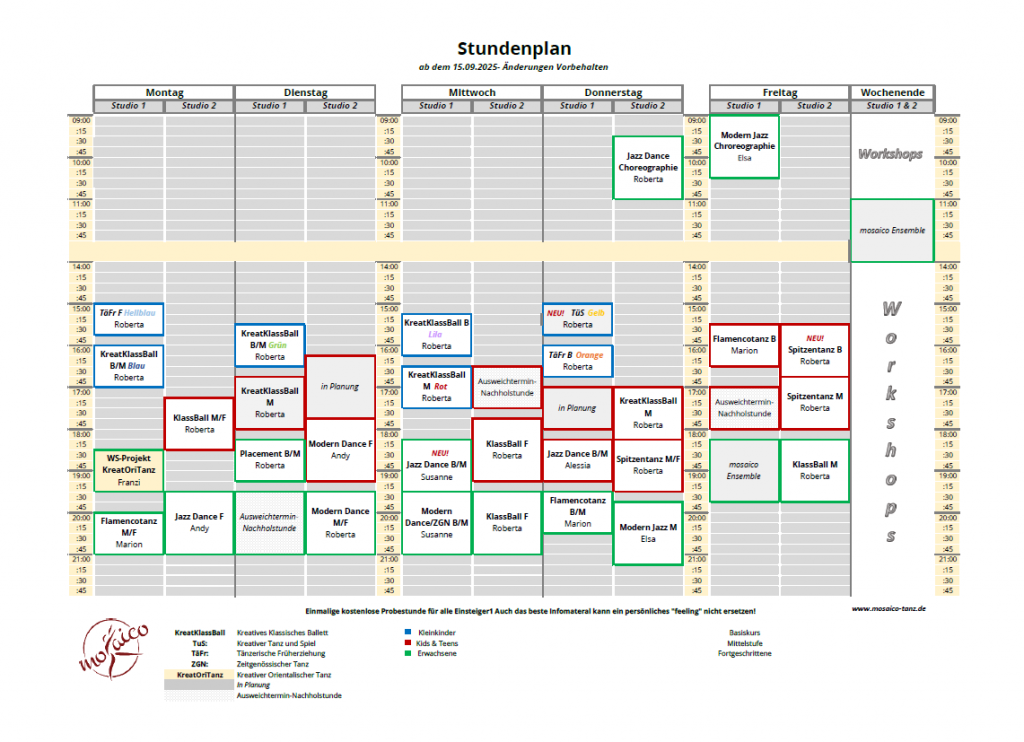 Der Stundenplan für das Tanzjahr 2025/26 finden Sie hier zum Download.